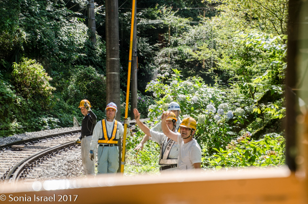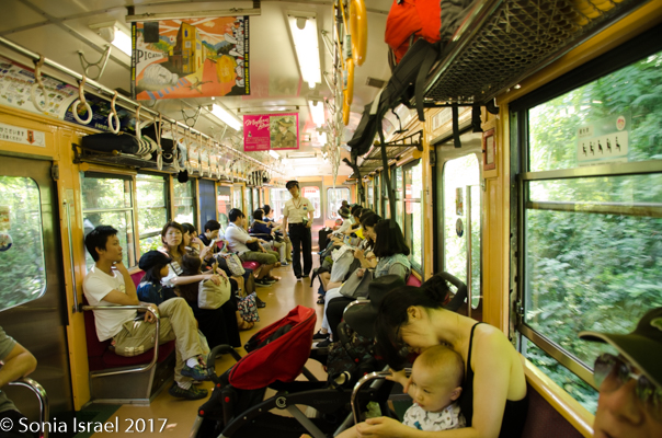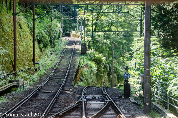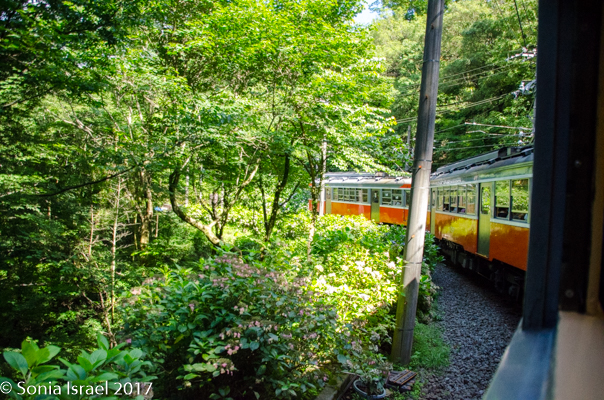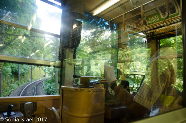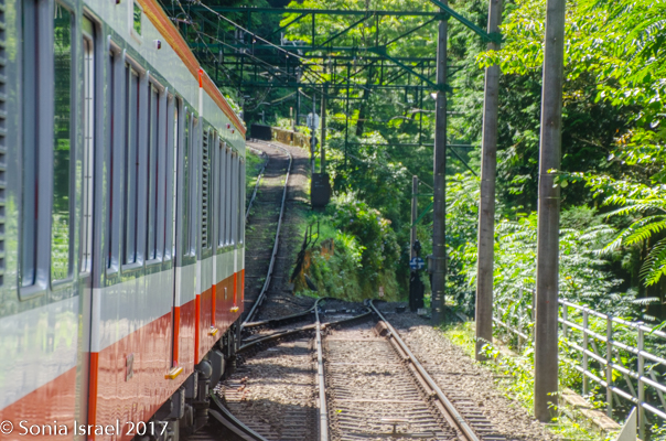 The Tozan Railway (remember tozan means mountain climbing) ascends very steep slopes with sharp curves and severe inclines. The trains from the “nostalgic 100-series trains” have been in service since 1950 so are a truly retro-style journey. I realized I should have sat in the first or last car (there are only 3 cars!) for a better view. There was always the trip back.
