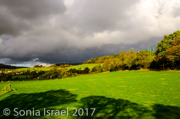 Because of the little rain that Ireland got this summer, the trees are still all covered in red and yellow and orange leaves. The sunrise made them glow and the leaves were literally shimmering. Throughout the trip we were amazed by the spectacular colors of the trees, especially against the green, green fields.