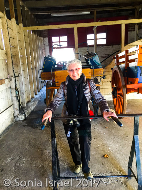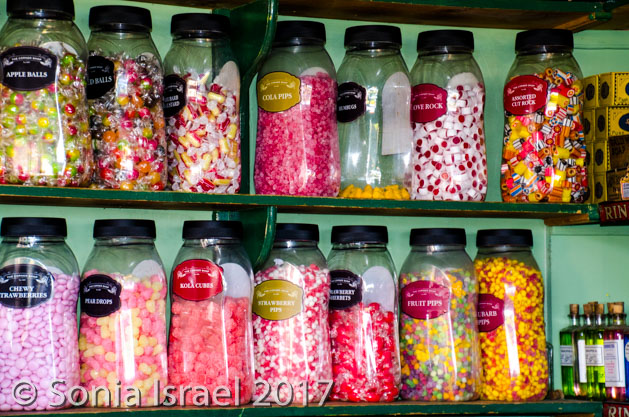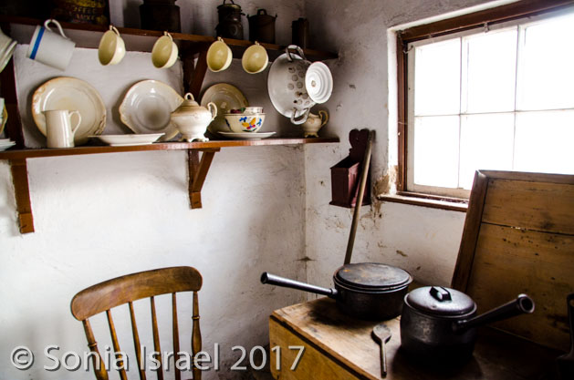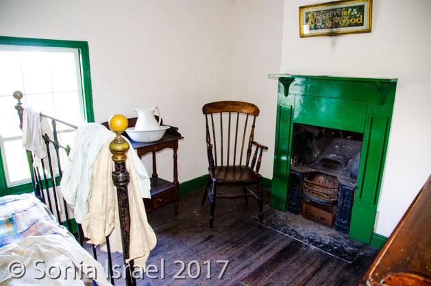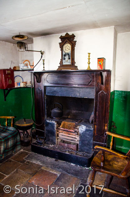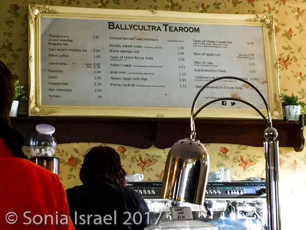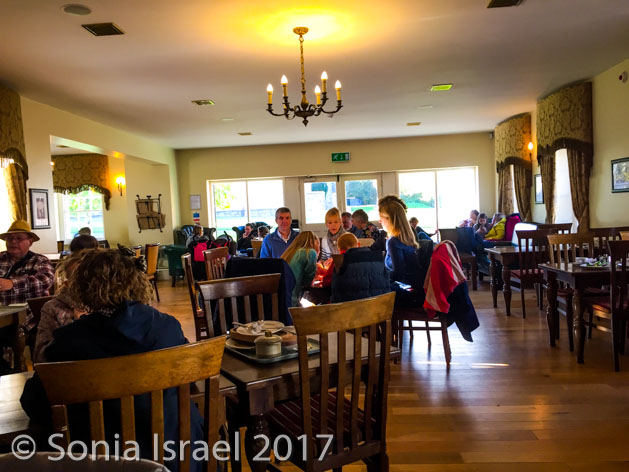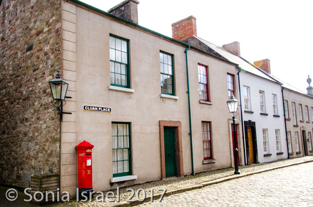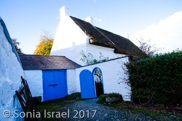 Then it was back on the road, back past sheep farms and colorful trees to Ballycultra, a museum of how life in the countryside of Ireland once was 100 years ago. There are thatched cottages, schools and shops all set up like long ago. Staff are dressed like yesteryear. Some buildings were brought over from their original sites in different parts of Ulster. Some are reproductions. It was cute, but not overly impressive. I think with young kids it would have been more fun. We did have lunch at the tea shoppe which had great homemade soup and Irish black soda bread and the most amazing apple pie (which we photographed but did not eat).