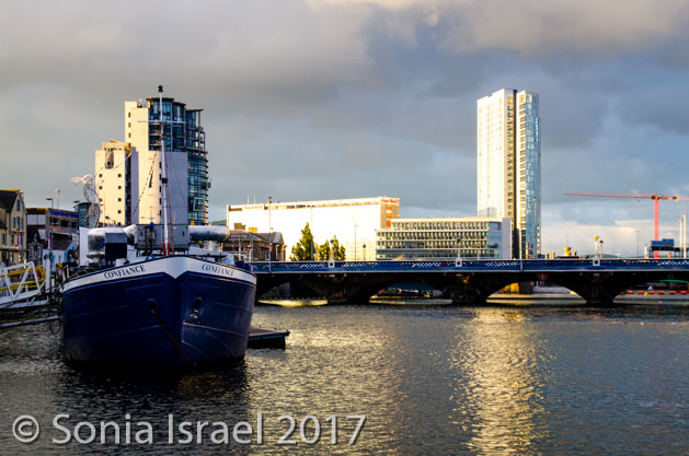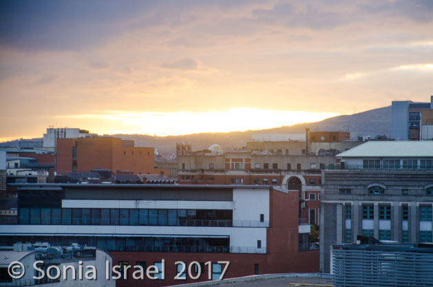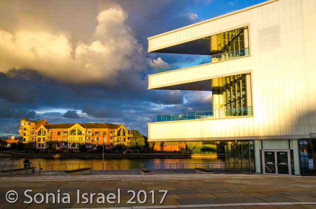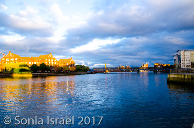 The sun was starting to set which made the light on the buildings even more gorgeous. We walked back on Grosvenor Road, through the concert hall and to the waterfront. Then back around again to our hotel.