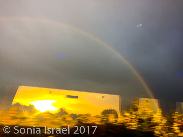It began to rain a little bit, and then it stopped and the sky was covered in a full rainbow. I literally wanted to look for the leprechaun with the pot of gold at the end.
