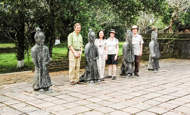 We then had a long ride to Danang, and on the way learned many, many things. For example, when people die, they are first buried by the river for 3 years. Once there is nothing but bones left, they are moved into tombs in the hills/mountains as the mountain represents the ruler. That shows respect to the ancestors. In the Saigon area, there were no mountains, so people are buried in tombs either in the rice fields or next to their children’s homes.