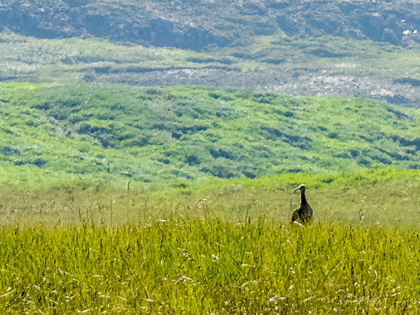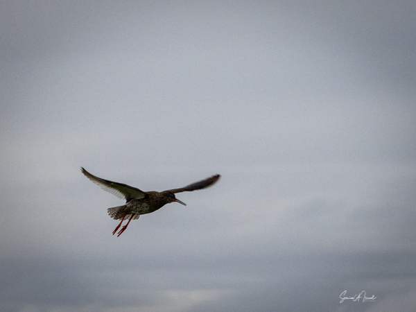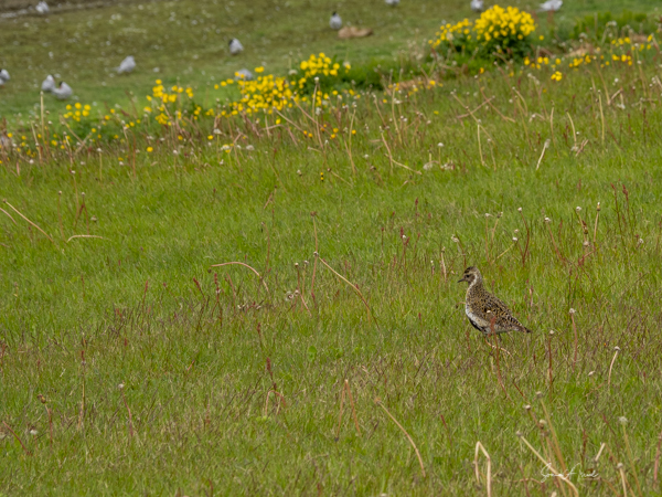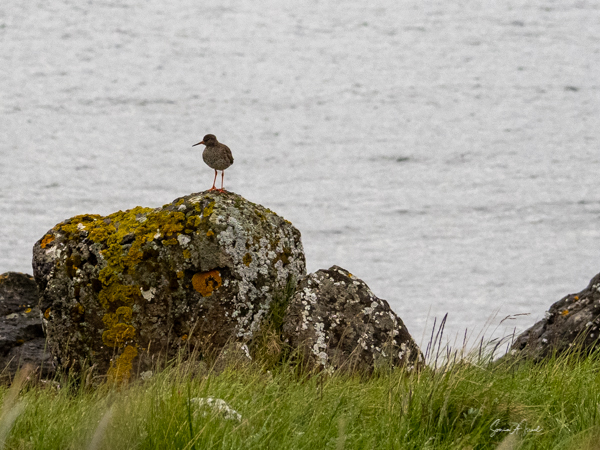 The redshank is from the Tringa species and likes to live in marches or moist meadows while breeding. Other times they prefer to live along the sea. The island of Flatey provides both those things. The bird itself is considered a medium sized wader at about 5.3 ounces and about 10 inches long. It is particularly funny to watch it fly as it flies in a zig zag motion interspersed with gliding. The bird we first saw was sitting on a rock which is it seems to like to do, watching over it’s nesting area. But you don’t have to see the bird to know it is there. All you have to do it listen because the redshank’s cry is so distinctive: tííjúú-tííjúú-tjiikk-tjiikk.