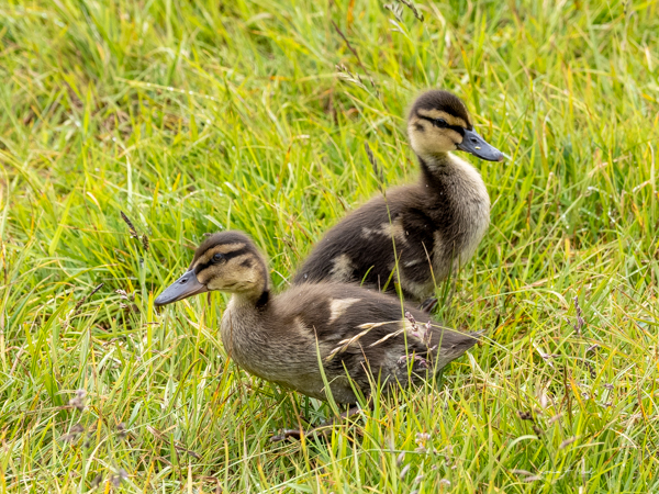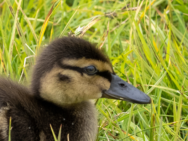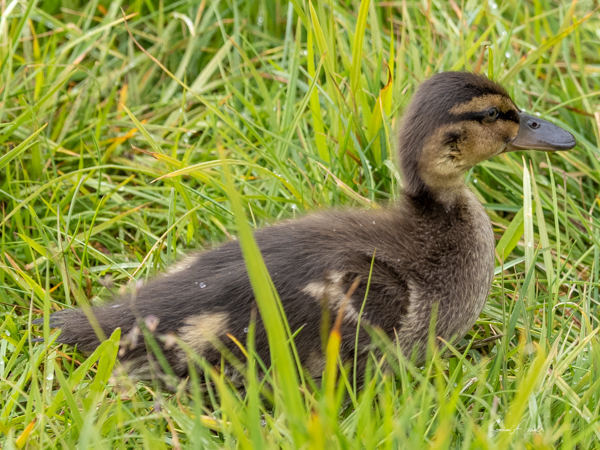 Like the puffins, both the male and female care for the 3-4 eggs in their grassy nest. The babies are protected in part they blend into their surroundings with their dark brown body with light-brown or yellowish stripes. Different from many other species, the mother leaves the babies as soon as they fledge, but the father stays with them until they learn to fly, showing them the good places to find food and calling out in their high pitch to warn them of dangers.