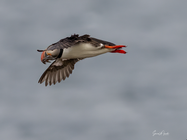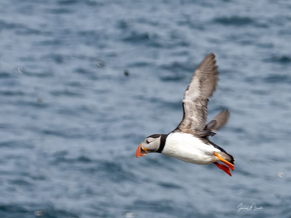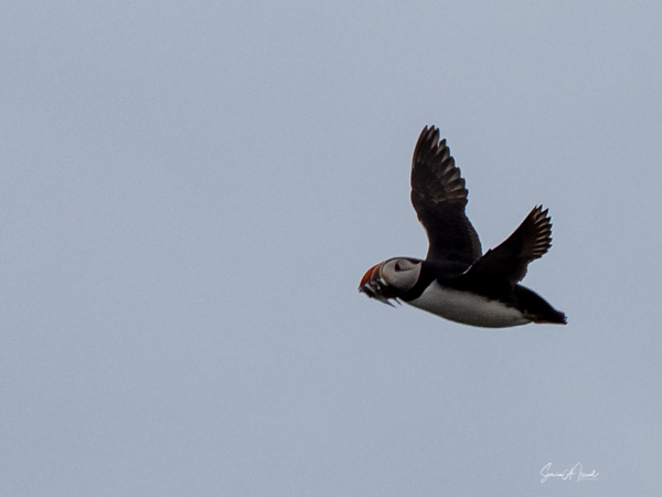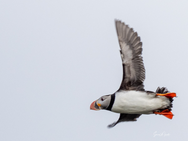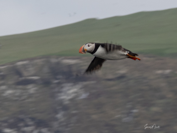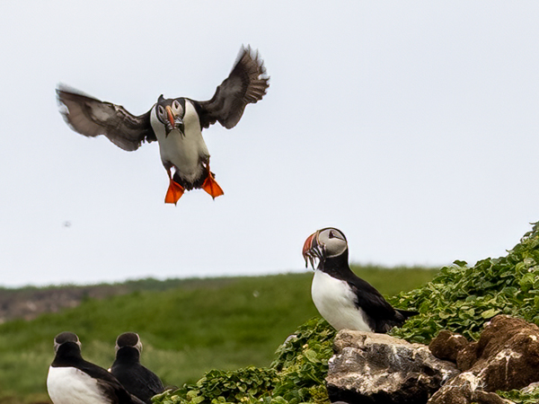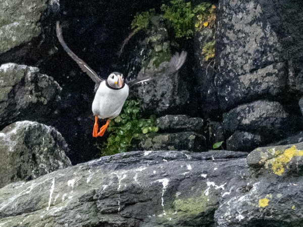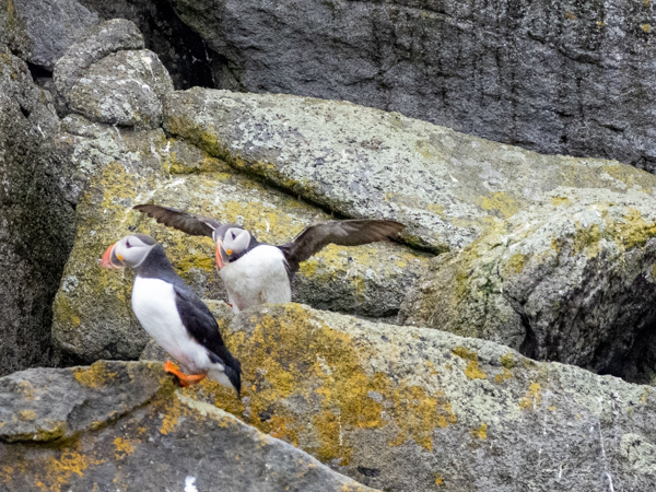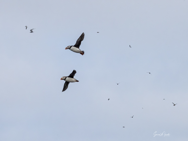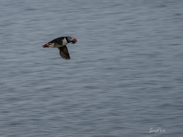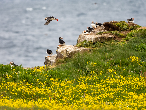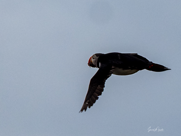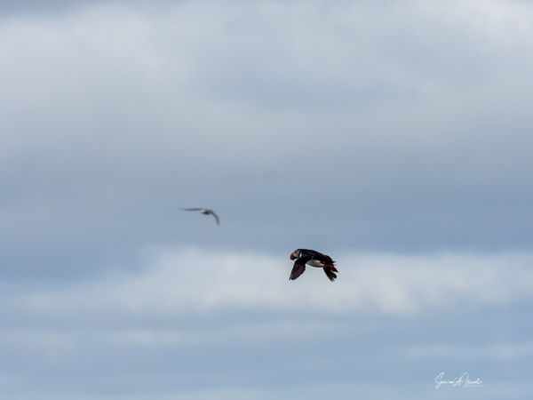 I thought it would be quite noisy with puffins all around, but it was not. Puffins are silent when they fly and only vocalize in their breeding colonies.