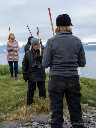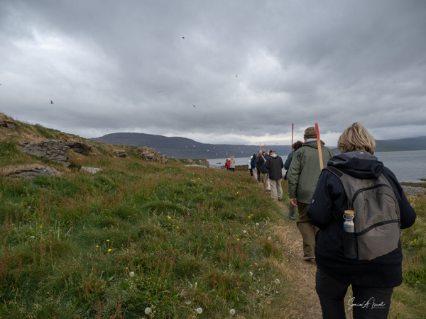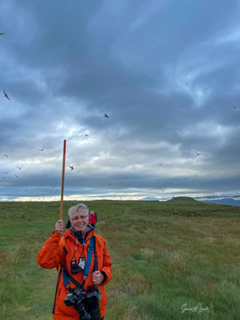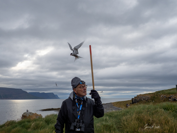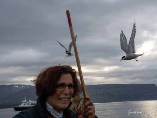 On the island of Vigur, as the sun was setting, they followed us along the path by the water and then, as we stood around in a group listening to our guide, they began attacking in seriousness. One of our new friends, Margaret, held her stick up high and one particular bird kept dive-bombing her. The tern would attack the stick and Margaret would cover her head. Luckily no one was hurt.
