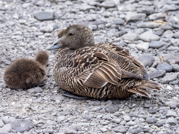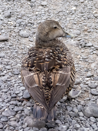 We saw a few eider ducks first on Flatey and later on Vigur Island, which has about 4000 ducks. These are large ducks (about 20-28 inches long) who build their nests close to the sea. We only saw one male on Flatey Island and he had his head tucked beneath his wing, sleeping the entire time. But we saw several females and lots of chicks. The females looked like they had been carved and sculpted. Beautiful.