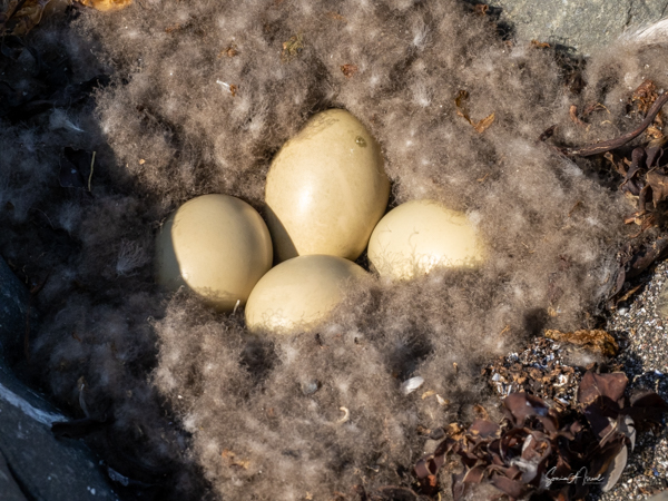 Eider ducks can live 20 years and each year, they come back to the same place to nest. What is very special about both the duck and their nests is that they line the nest with eiderdown, the feathers shed from the female’s breast. She has an outer layer