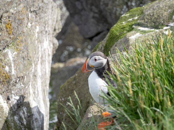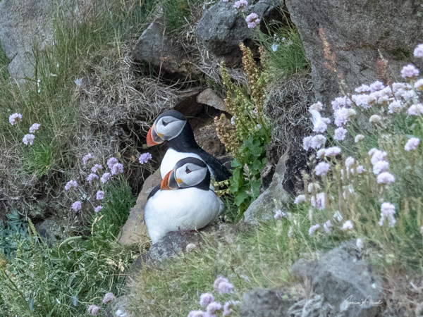 I mentioned that on Grimsey I found myself sitting near the puffins’ burrows. That is how they breed. They live in large colonies often on the coastal cliffs and they nest in crevices among the rocks or in burrows in the soil.