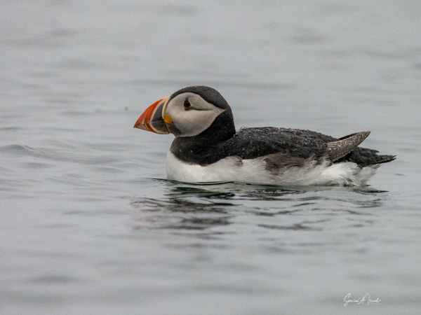 Our first sighting was on the island of Flatey (please see the post on Flatey). We headed down to the lower deck and took turns climbing into zodiacs. As the spray hit our faces, we approached the island and pulled close to the sandy shore for a wet landing. We had our muck boots on, climbed into the shallow water and, just like the birds, waded onto shore. Grace Winer, one of the naturalists on board, was our guide that day and she pointed out all the birds. But our first sightings was not of puffins but of ducks and terns. More on them below because I really want to write about the puffins first.