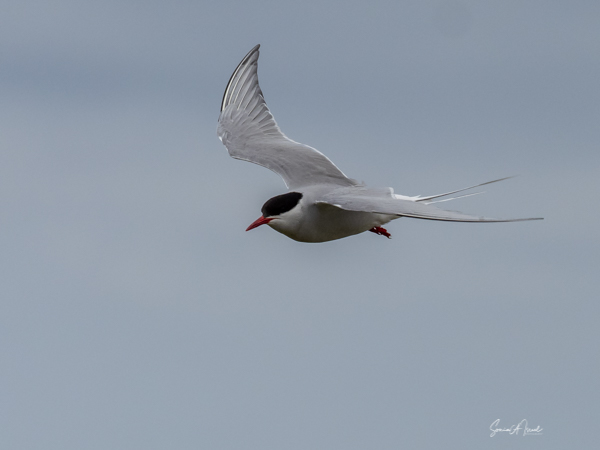 It wasn’t just puffins that we encountered. We had quite the adventure with Artic terns. Terns are beautiful, elegant looking birds with a forked tail, a black cap on their head, pointed wings and red legs and a red beak. But look out!