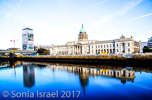 We spent the morning doing some more walking. We walked back over towards the convention center and the Samuel Beckett Bridge, and then along the River Liffey crossin