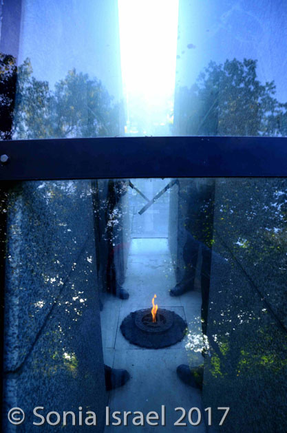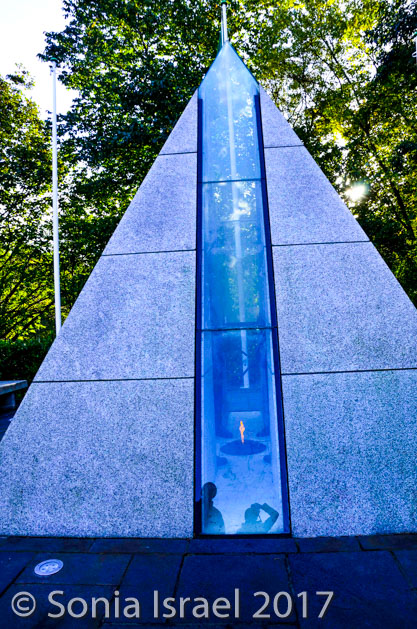al flame in the center. This was the Universal Links on Human Rights memorial. It was commissioned by Amnesty International in 1995 and represents the jails around the world holding prisoners of conscience. We stopped for a moment, in silence, and contemplated just what this meant.