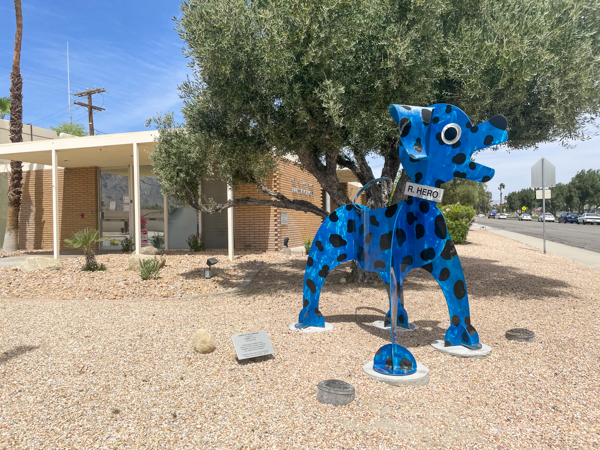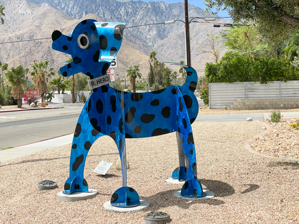 - “R. Hero” in blue in front of the Palm Springs Fire Station #3 in Palm Springs