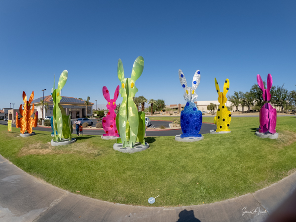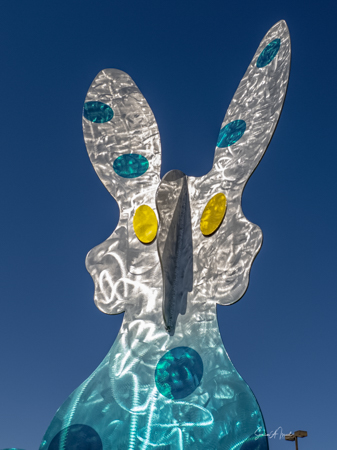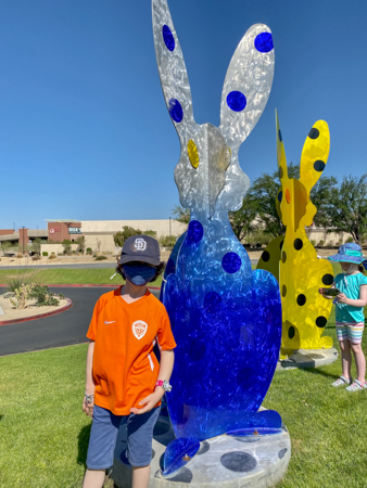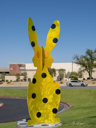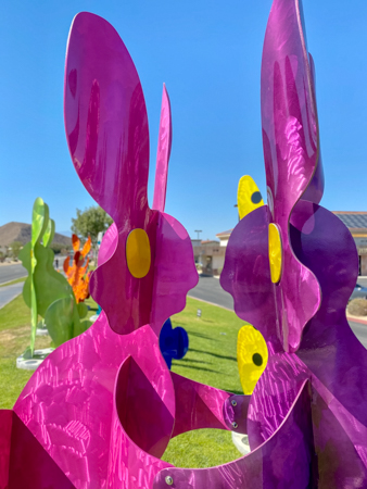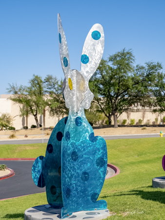 I found myself back in the desert in April 2021. It was still the COVID-19 pandemic. No one was going inside restaurants. No one was seeing people. We were all masked. So it was time for another art tour/road trip. This time to see rabbits (well, it was almost Easter). But these were not just any rabbits. These weree nine aluminum rabbit sculptures by local artists, Karen and Tony Barone.
