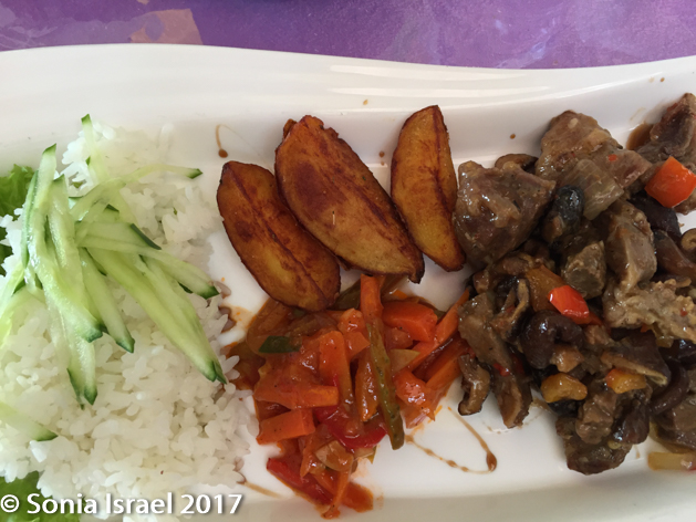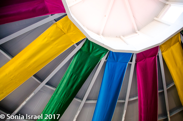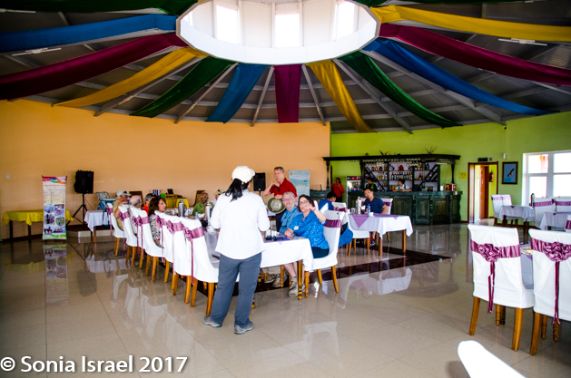 We had lunch made from locally grown, organic products. The dining hall was large with a rainbow of fabric circling the ceiling. It was here that we could find outlets to charge our batteries, computers and phones, as there were no outlets in the gers.