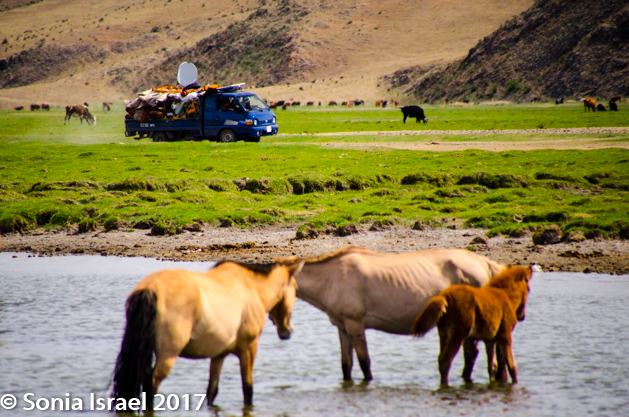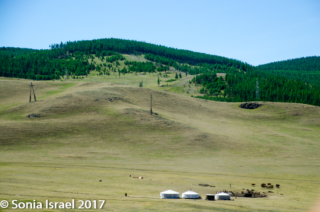 We quickly left the city behind us, the tall buildings morphing into brown mountains. Brown is the primary color now as Mongolia is in a draught.