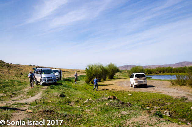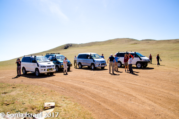 Today we left UB and headed south-east to the steppes of Mongolia, to the Gun-Galuut Nature Reserve. Instead of the bus, which would never make it on the “roads” outside of the city, we became a caravan of vans. The cars were all numbered and drove in order. We were in the car with Azaa, as well as Tommy and Marilyn so the four of us got to ask Azaa lots of questions and learn more about Mongolia on our long drive.