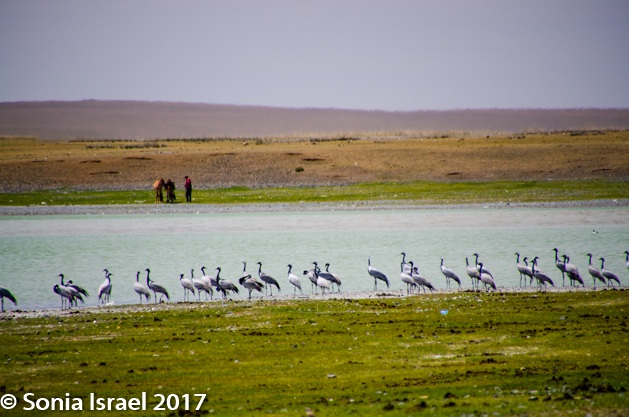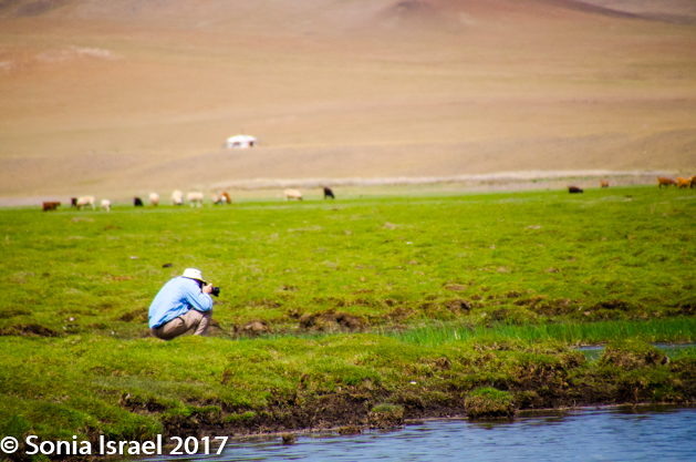 And then suddenly there was a lake, a small lake filled with what seemed like hundreds of cranes and horses. We all got out with our cameras and started shooting. One of our photographers got a bit too close and the cranes all took off, filling the sky with their wings and the air with their songs. The horses ignored all of this and just continued to drink the cool water. And it wasn’t just the birds and animals we were watching and photographing. There were little flowers everywhere. And the most beautiful insects like grasshoppers and crickets and others I couldn’t identify. Nature at its best.