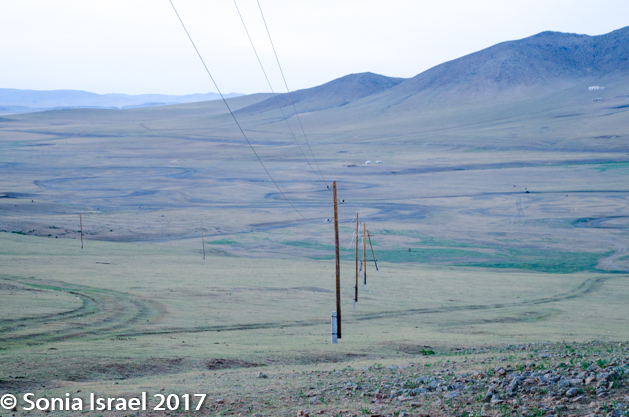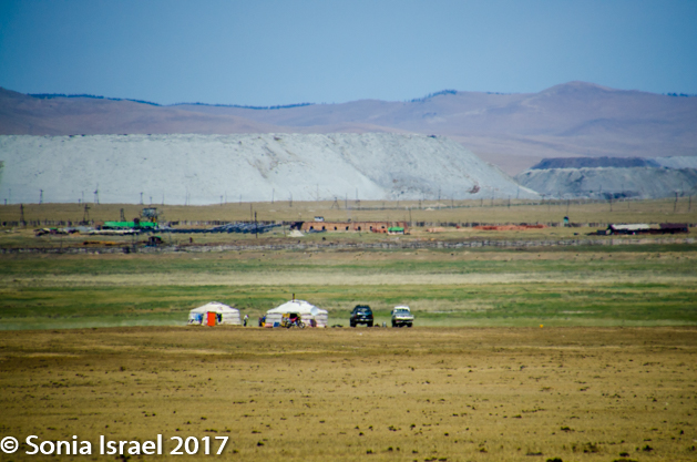 As we got deeper into the steppes we passed railroad tracks and a bridge used for trains to carry coal to the city. Here in the middle of nowhere (although all of Mongolia seems like the middle of nowhere – in a beautiful peaceful way), there is a coal mine.