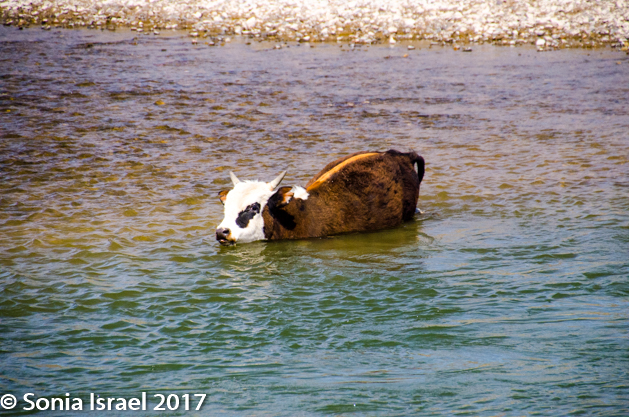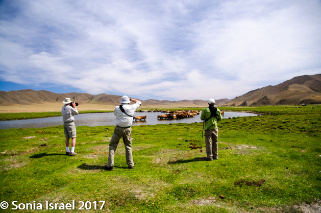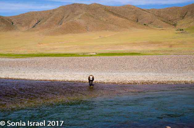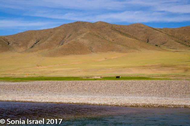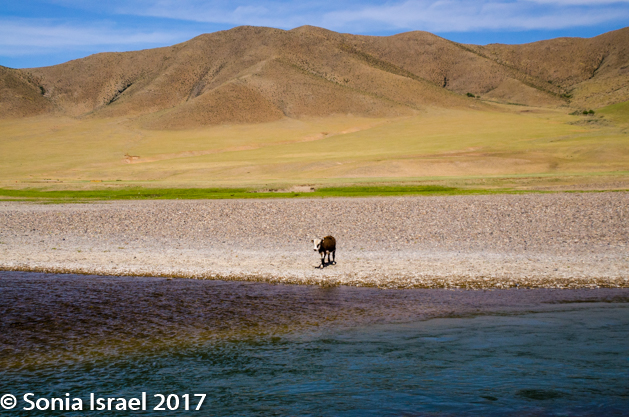 From there we drove over to another part of the reserve where we went looking for Argali sheep. But we would not spot any. We did however watch a lone cow slowly make her way across the vast stones, swim across the stream and walk up the other side, almost right into us.