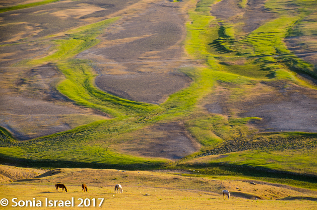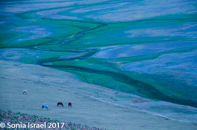 The whole valley lay before us. The sounds were like a symphony – the yaks, the sheep, the goats, the birds. Each with their own timber and own distinctive noise, but together sounding like music. And crickets flying with white gossamer wings. It was hard to know where to look first as there was so much so see. The little flowers growing under our feet. The animals. The long grass growing in clumps. The moguls of earth. The sun. The sky. The water. The reflections.