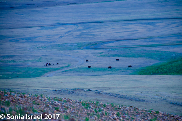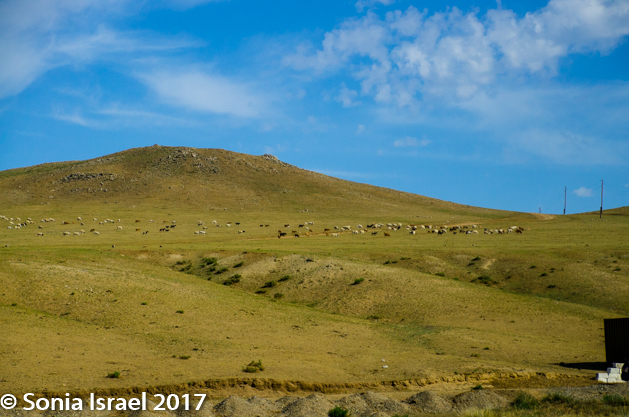 Our caravan set out over the steppes, driving here and there as she kept a look out. I have no idea how the drivers know where they are going or how to get back. There are no real roads. There are certainly no signs or landmarks. You can’t use the gers as they move. Obviously when one grows up here, they learn to identify each bush, but it is a mystery to me how they do it.