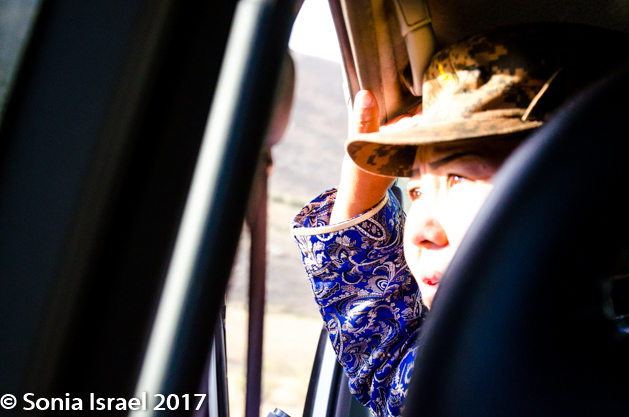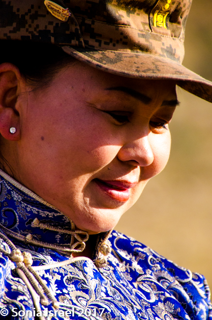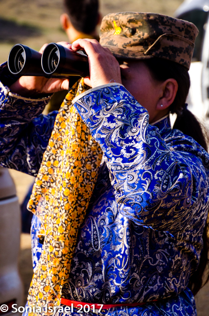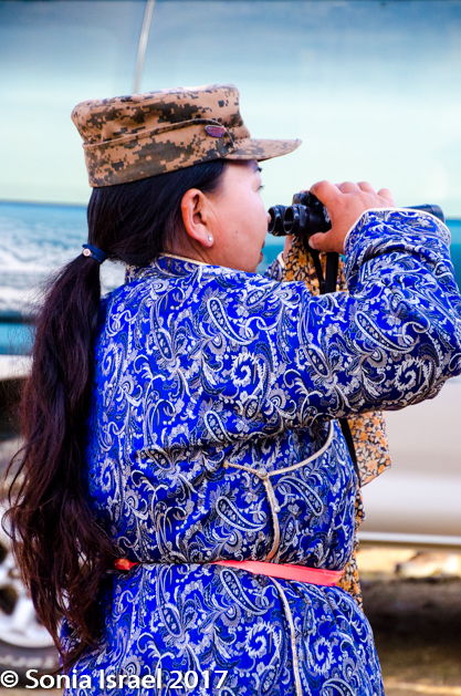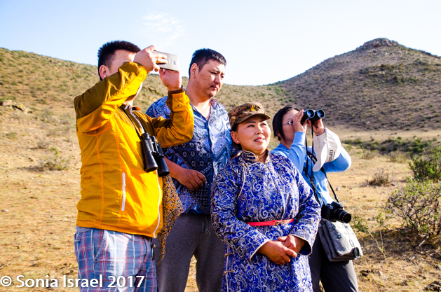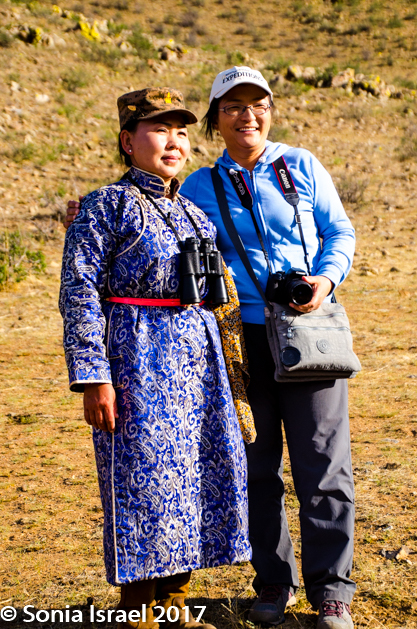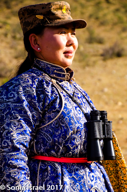 We went back down the hill, cleaned up and went into breakfast. Breakfast was a buffet with soup and rice, and it filled our stomachs. We grabbed fresh camera batteries and were ready for our next adventure. We were being met by a park ranger, Ariunaa. She was wearing her ceremonial deel with her binoculars around her neck as she was our spotter, accompanying us to find Argali sheep.