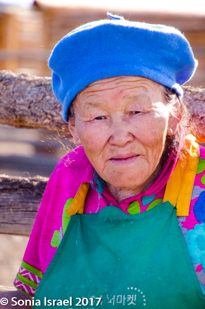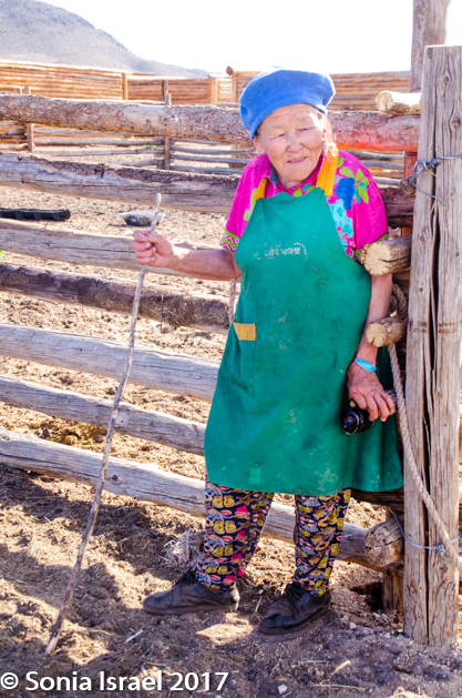 Ariunaa translated for us as we bombarded her with questions. Her name is Nyamjav and she has seven cows. Turns out that she has a son living in Seattle and has been to America several times but her visa has expired. This was her spring/summer home and the structures were built by the Russians during their occupation. She posed for us, flashing that beautiful smile. And the cameras clicked like crazy.