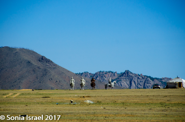 the 13th century Mongolian tribes. There were also warriors on horseback protecting their leader. And in the distance, a statue of his wife, Börte.