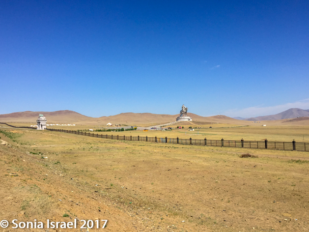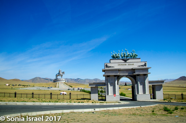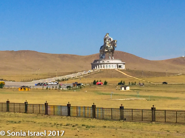 On the way out to the steppes, we had passed the enormous statute of Genghis Khan on his horse on the banks of the Tuul River. Azaa promised we would stop upon our return. And stop we did. This is not just his statue, but a whole complex which also includes a visitor’s center which has 36 columns representing the 36 khans from Genghis to Ligdan Khan. The statue is in this particular spot, what seems like the middle of nowhere, because it is believed that Genghis Khan found a golden whip here. He and his horse are facing east, towards his birthplace.