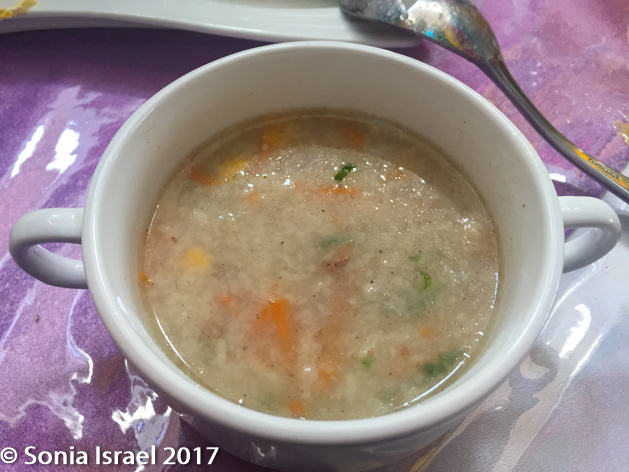 Andy was still lazing in bed, so I woke him up and we went to the dining hall for a breakfast that included a type of porridge or soup made from lamb and vegetables.