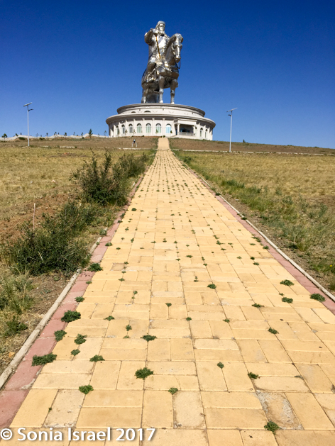 We walked up the long, long path and as we got closer, Genghis got bigger and bigger. The statue is 131 feet tall and is wrapped with 250 tons of stainless steel with a copper sword. In the inside of the building, alongside the souvenir shops, is a tall boot, standing 29 feet high. Genghis was a big man….