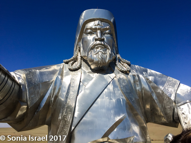 After the Soviet occupation ended, large numbers of monuments celebrating Chinggis Kahn (the Mongolian name for Genghis) were erected. The international airport was renamed after him. The University was renamed after him. The main hotel in Ulaanbaatar was named for him. And his face appeared everywhere from liquor bottles to candy to the local currency.