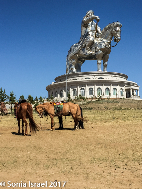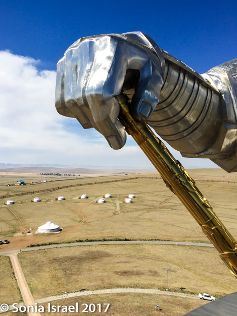 We took the elevator, which held about 4 people at a time, up to the top, climbed a few more stairs and found ourselves on the horse’s head, with the huge face of Genghis Khan, and his sword, right above us. One couldn’t help think about what a great man he was. Larger than life while still in life. Larger than life still.