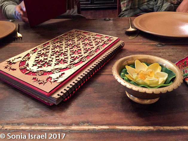Dinner that night was on our own, but, on Praveen‘s recommendation, we all went together for Indian food at Hazara. The restaurant itself was beautiful with carved wood and flowers everywhere. We sat at one long table with some sharing the spicy Indian food, and others choosing a milder dinner. But mostly it was nice to all be together.