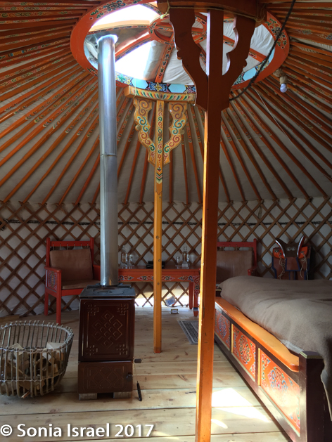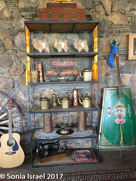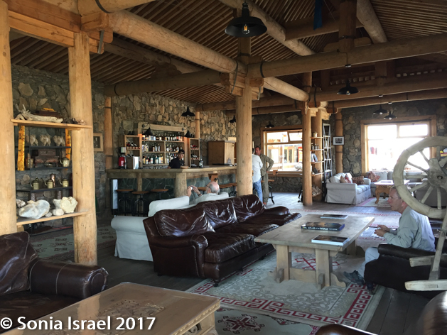 We settled in, unpacked and headed to the common lounge/bar area. The lounge is decorated with all the artifacts that Jalsa has collected over the years, including Mongolian musical instruments and dinosaur bones. There was a full bar and I went over to order a glass of wine. Turns out, like in the other camps, you can only order wine by the bottle. But Jalsa was sitting there and he told the bar-tender that I could have just a glass and in fact, all in the National Geographic crowd could have wine by the glass. And then he told me that my wine today was on him, and he winked and said, “but don’t tell everyone else.” Jalsa and I had a lovely conversation. What an interesting man he is. And a good, honest man. I felt like he was the epitome of Mongolian people. Kind. Generous. Welcoming. Gracious.