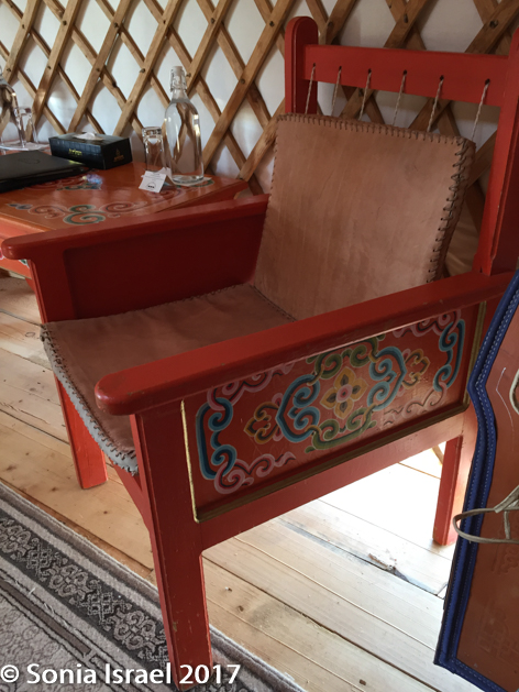 We settled in, unpacked and headed to the common lounge/bar area. The lounge is decorated with all the artifacts that Jalsa has collected over the years, including Mongolian musical instruments and dinosaur bones. There was a full bar and I went over to order a glass of wine. Turns out, like in the other camps, you can only order wine by the bottle. But Jalsa was sitting there and he told the bar-tender that I could have just a glass and in fact, all in the National Geographic crowd could have wine by the glass. And then he told me that my wine today was on him, and he winked and said, “but don’t tell everyone else.”  Jalsa and I had a lovely conversation. What an interesting man he is. And a good, honest man. I felt like he was the epitome of Mongolian people. Kind. Generous. Welcoming. Gracious.