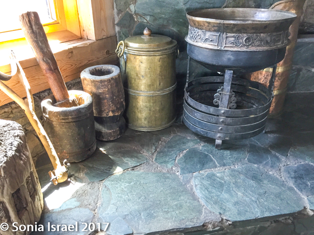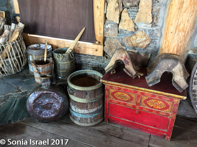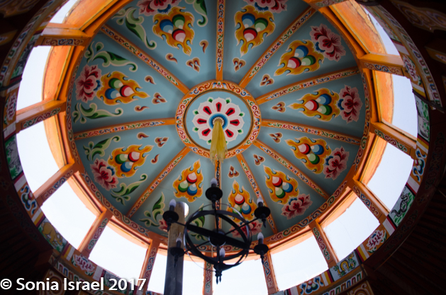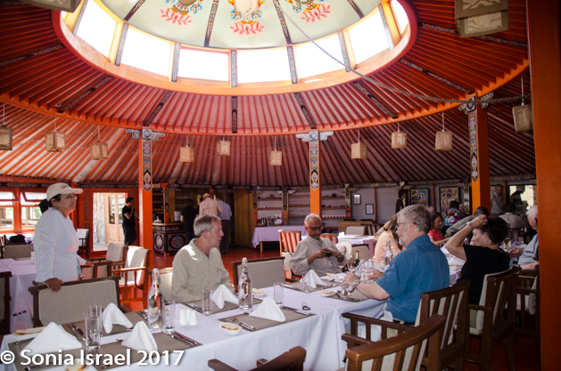 It was then time for dinner. Our group had one long table that was reserved for us for all our meals. The restaurant, called the Bulagtai, is run by Chef Munkhsetseg. It is built like one very large ger, beautifully painted with a stunning toonu (opening) at top. I had thought that I would lose weight in Mongolia. But the food was fabulous, especially here. There was a Russian influence for some of the dishes. In general, Mongolian cuisine is rooted in the nomadic history, which means there is lots of dairy (from sheep, goats and cows) and meat (from sheep, goats, cows and horses), but very little pork, chicken or vegetables. Two of the most popular dishes are Buuz (a meat filled steamed dumpling) and Khuushuur (a sort of deep-fried meat pie). Milk is almost sacred in Mongolia. The nomads have developed a number of unique dairy products made from goats, sheep, cows, yaks and mares. Milk is also used in rituals such as tossing milk into the air or sprinkling it on a person or animal or object as an offering to the spirits. Cheese is made from cattle, yaks, goats and sheep.