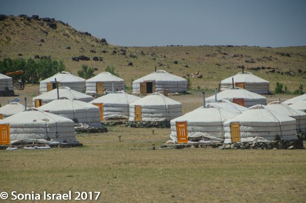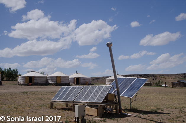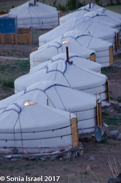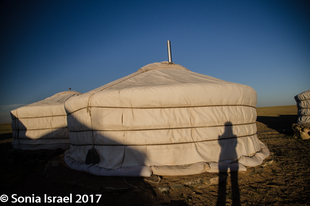 The gers were lined up along paths that crisscrossed each other. And in-between the gers were solar panels. The strength and power of the sun. You can sure feel that in the desert.