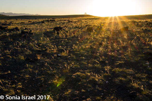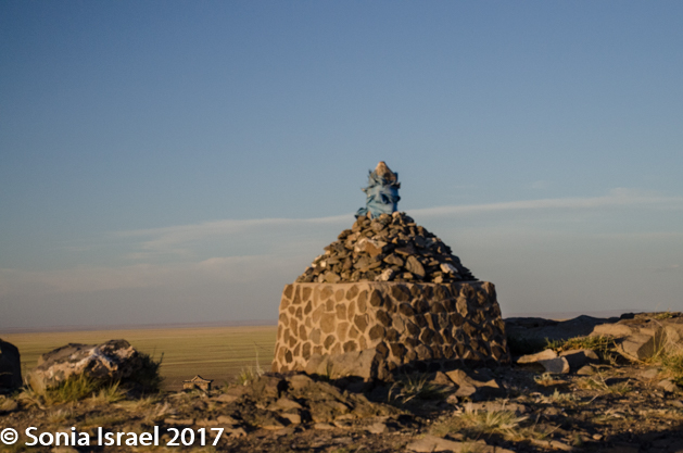 After dinner some of us wandered up the mountain to watch the sun set. There was an ovoo at the top along with 360 degree views. On one side were the mountains and the watering hole full of sheep and goats and horses. On the other was a valley with a few horses grazing. And the tufts of grass were literally glistening as the sun fell and reflected on them.