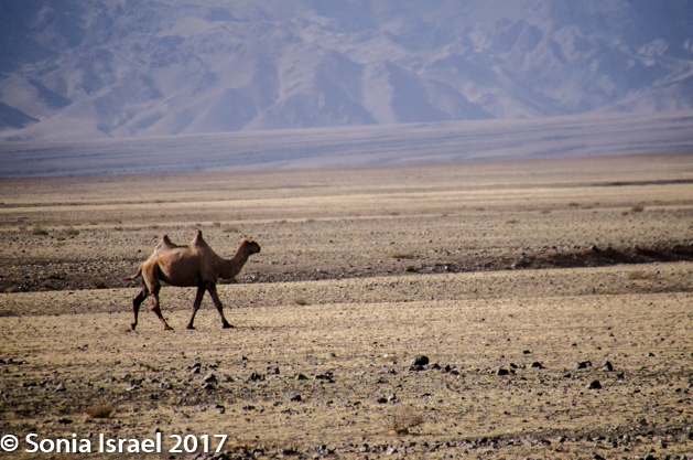 The Gobi Desert is a vast, arid region in both northern China and much of southern Mongolia. The name “Gobi” is Mongol for a desert steppe. It is at 3000-4000 feet above sea level, so really not your typical desert. This also means that unlike most deserts, it can get quite cold here in the winter and quite hot in the summer. It’s known for its sand dunes (although not many), mountains and rare animals such as snow leopards, Argali mountain sheep, Saker falcons, and Bactrian camels, which are the last remaining wild Bactrian, i.e., two humped camels. The Gobi bear, the only desert bear, also lives here. While we did see the camels, we did not get to see any snow leopards or Gobi bears.