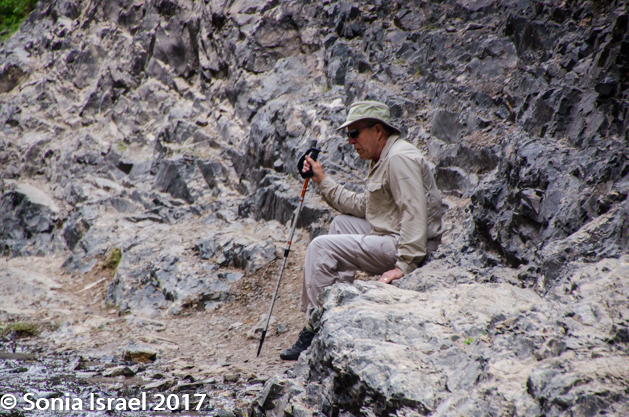 We got out of our cars, grabbed walking sticks, stopped in the porta-potties and began our hike.