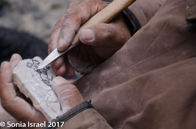 And just on the other side of the ice, sat a man and his two sons, carving pictures of horses into rock. He had a wonderful face, covered with a big, brown felt hat and wearing a long, beige deel. I watched him for a bit. I took some pictures. I bought some beads.