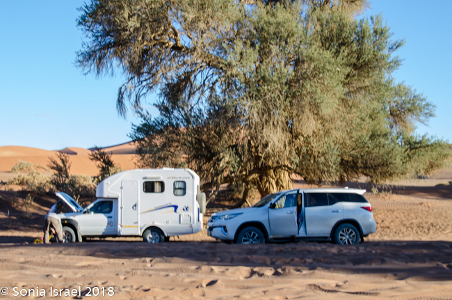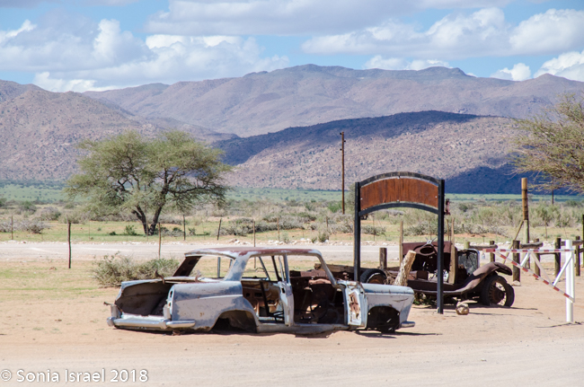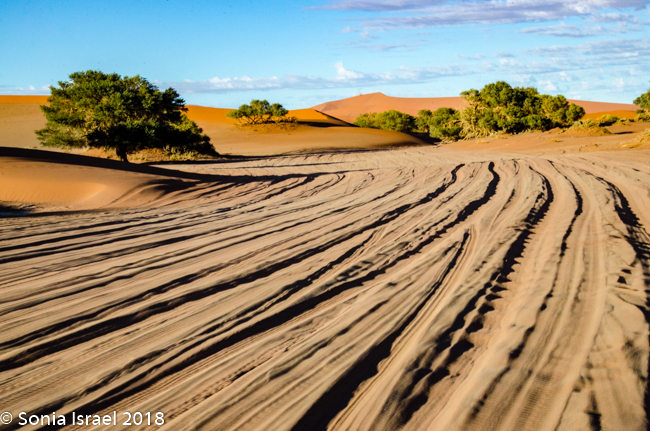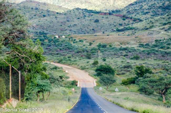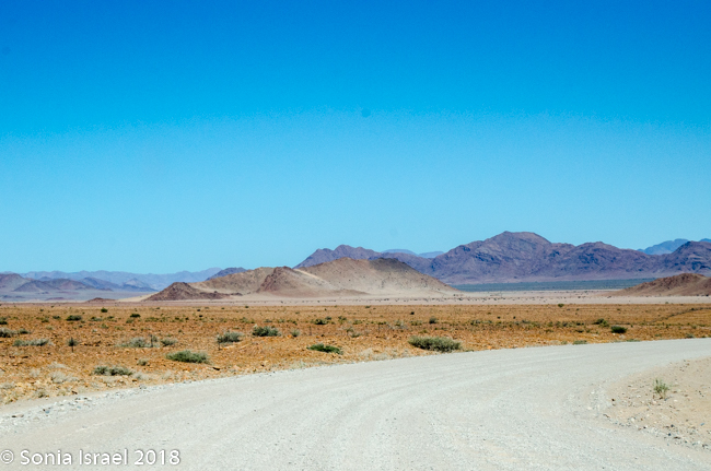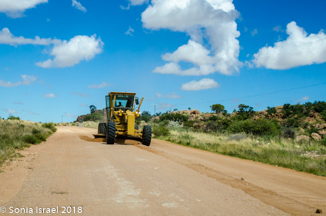 We were driving on one of the few paved roads in Namibia, straight out of town. The road quickly changed to gravel. Little did I know that unpaved roads were the norm here, even official roads with numbers. Gravel. Sand. Potholes. Washboard, corrugated roads. Every once in a while we would see a tractor trying to even out the road. Good thing we were in a Toyota Land Cruiser!