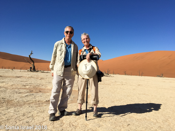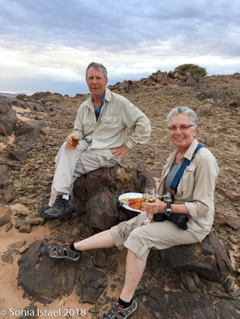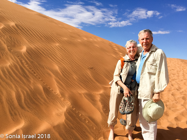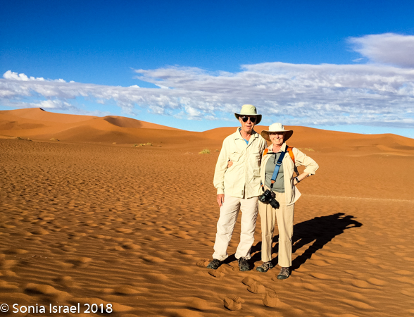 The next morning, I was feeling better. We had set the alarm for 5:00am as we were scheduled to take a balloon ride at sunrise over the Sossusvlei dunes. Unfortunately, when we got to the lounge for coffee, we found out that there had been lightening so the balloon ride had been canceled. So instead, Charles drove us to the dunes so we could finally take off our shoes and feel the sand between our toes, something we had planned to do the next day.