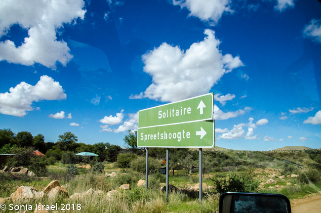 showed us the route for that day. Our destination was Sossusvlei. But it would be about a five-hour drive. Charles made me write down the roads we would take. C26 to D1265 to D1261 to Spreetshoogte (our first official stop) to Solitaire (for lunch) to C19 past Sesriem to Kulala Desert Lodge. Sounds so simple. Read on.