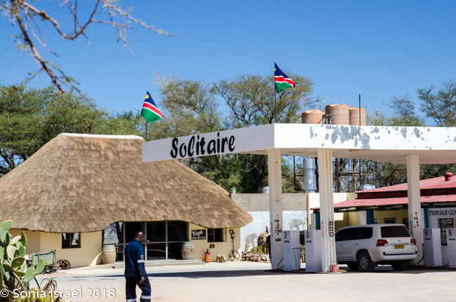 The other place to stop was Solitaire for lunch. Solitaire is a small settlement in the Khomas region, right in the central part of Namibia, which is where we found ourselves. This was pretty much the only place to stop and it reminded me of an old Western town. There was a bakery and a small restaurant, Café Van der Lee, with a menu of about 5 items. There was also a gas station and the toilets were clean. Besides, it was the only place to stop between Sossusvlei and Walvis Bay, which is way up north.
