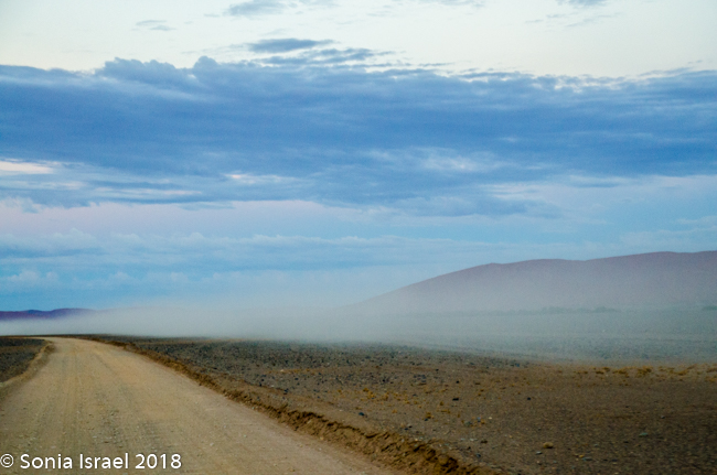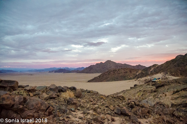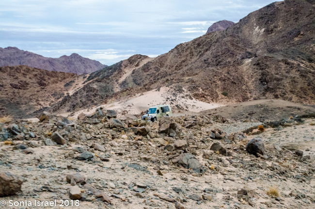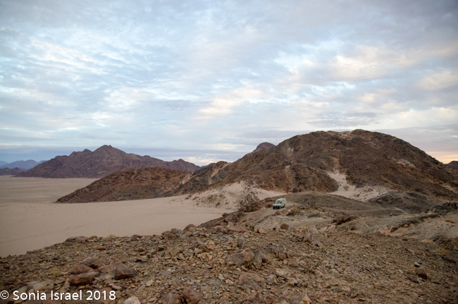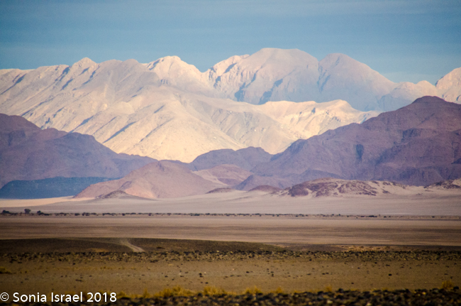 We finally entered the Namib-Naukluft Park. The mountains around us were starting to change color. They looked like painting with stripes of different colors. The road changed from being sandy to being more gravely. Par for the course.
