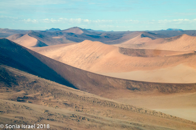 There were a few other people up there as well, and we would find ourselves running into them again and again in the next few days. Everyone who visits here pretty much has the same itinerary, plus or minus a bit here and there. And for those driving to Sossusvlei rather than flying, this was the place to stop.